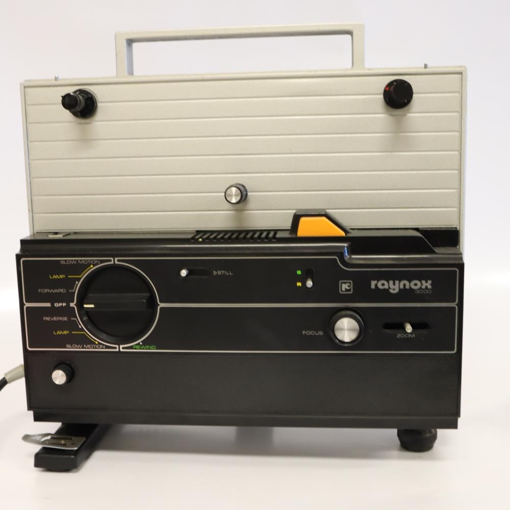 Kvikmyndasýningarvél af gerðinni Raynox 3000 super 8. Fyrri eigendur voru hjónin Helga Þórdís Tryggvadóttir frá Bjarnastöðum í Garði Eyjólfur og Gíslason frá Miðhúsum í Garði.
