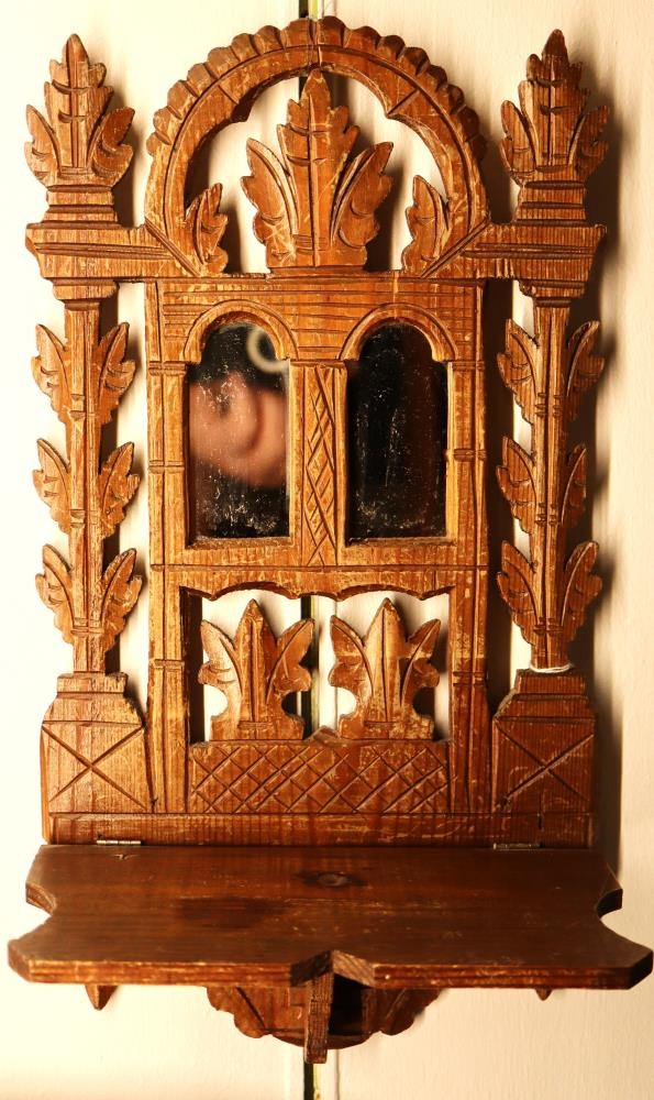 Hilla með spegli – útskorin af Sveini H. Þórðarsyni um 1930. Hann var móðurbróðir Þór Magnússonar.