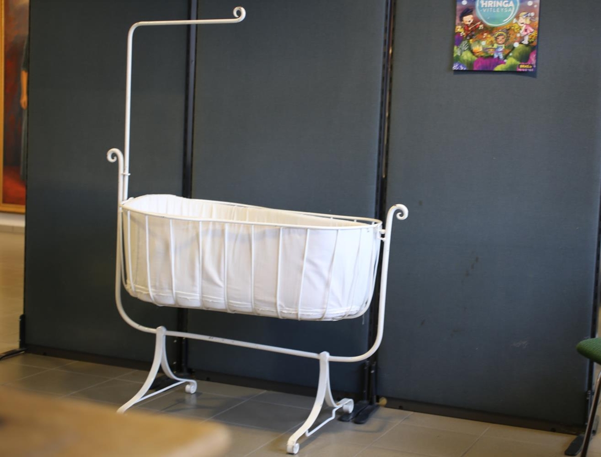 Hvít vagga úr járni með standi fyrir himnasæng. Úr búi Árna Vilhjálmssonar, héraðslæknis á Vopnafirði (ættaður frá Gunnarsstöðum á Langanesi) og Aagot Vilhjálmsson, dóttir Rolf Johannsson kaupmanns á Reyðarfirði. Vaggan var notuð af 11 börnum þeirra og síðar af ýmsum í ættinni, síðast árið 2007. Líklega smíðuð í Noregi. Dýna er yngri.