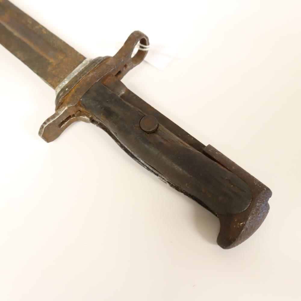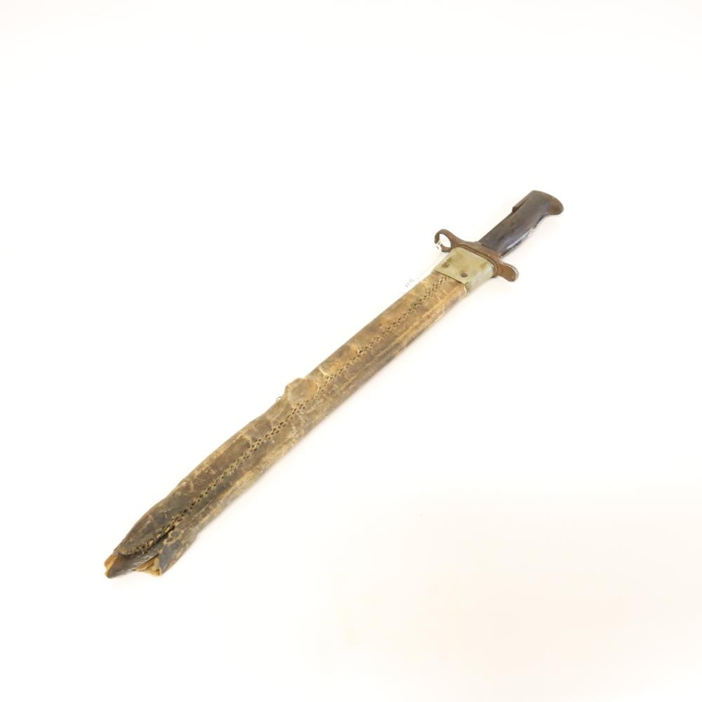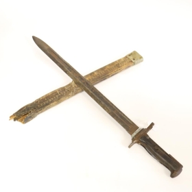 Byssustingur í slíðri frá stríðsárum. Rafn Torfason frá Miðhúsum í Garði fann þennan byssusting í kambinum fyrir ofan Gufuskála í Leiru á árunum 1963 - 1964, Rafn var þá á unglingsaldri. Sigurgeir Torfason eldri bróðir Rafns faldi byssustinginn fyrir yngri systkinum sínum í hlöðunni í Miðhúsum svo enginn hlyti skaða af, þar var gripurinn í felum allt til ársins 2023 þegar Sigurgeir gaf byggðasanfinu byssustinginn.