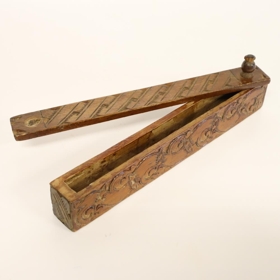 Prjónastokkur útskorinn. Fyrri eigendur voru hjónin Þorlákur Benediktsson og Jórunn S. Ólafsdóttir Akurhúsum í Garði. Talið er að stokkurinn hafi áður verið í eigu móður Þorláks, Sigríðar Björnsdóttur.