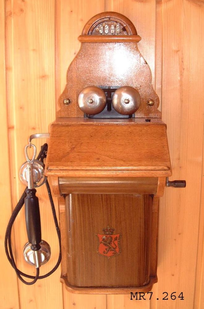 Veggsími með sveif. Áletrun: Aktieselskabet