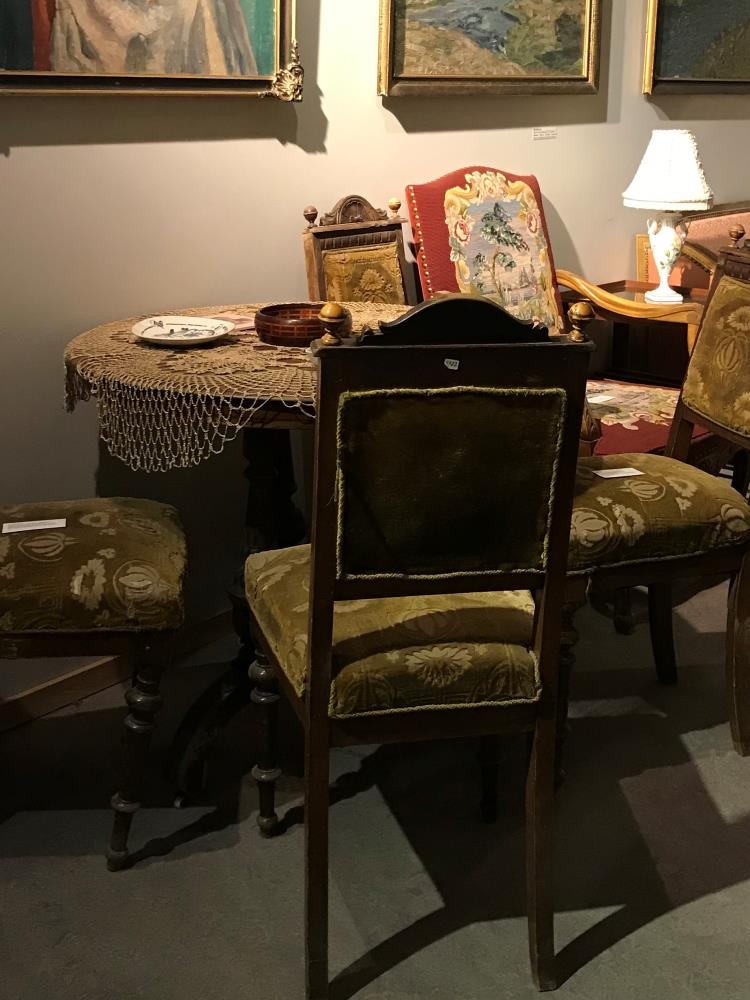 Stofuborð, kringlótt, spónlagt. Gefið af Eggert og Huxley sonum Ólafs Ísleifssonar og Guðríðar Eiríksdóttur í Þjórsártúni: Húsgögn í stofu smíðuð fyrir konungskomuna 1907. Smiður Erlendur Eiríksson frá Minnivöllum, bróðir Guðríðar.
