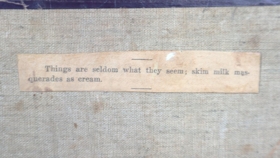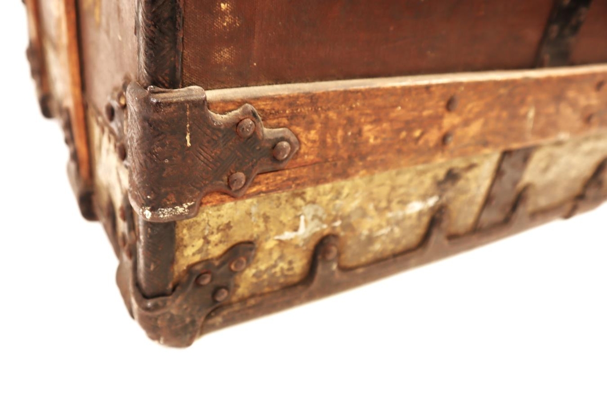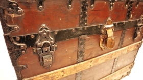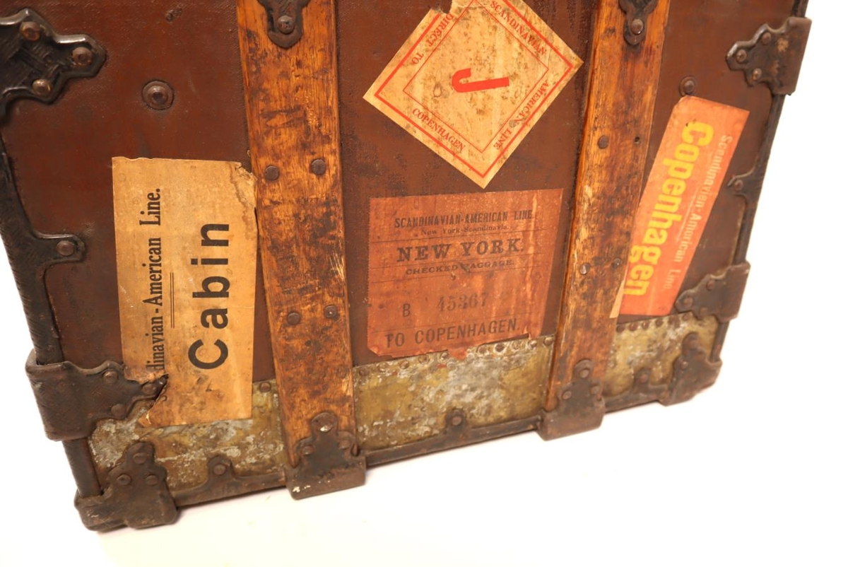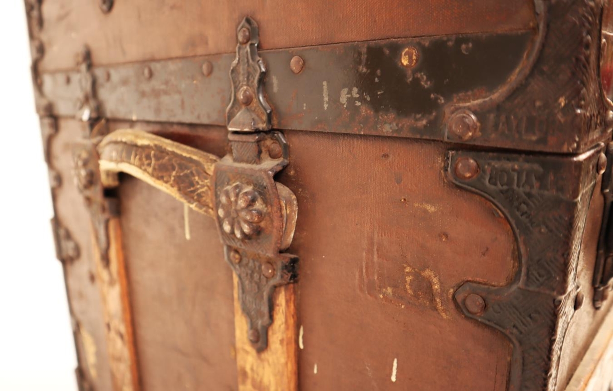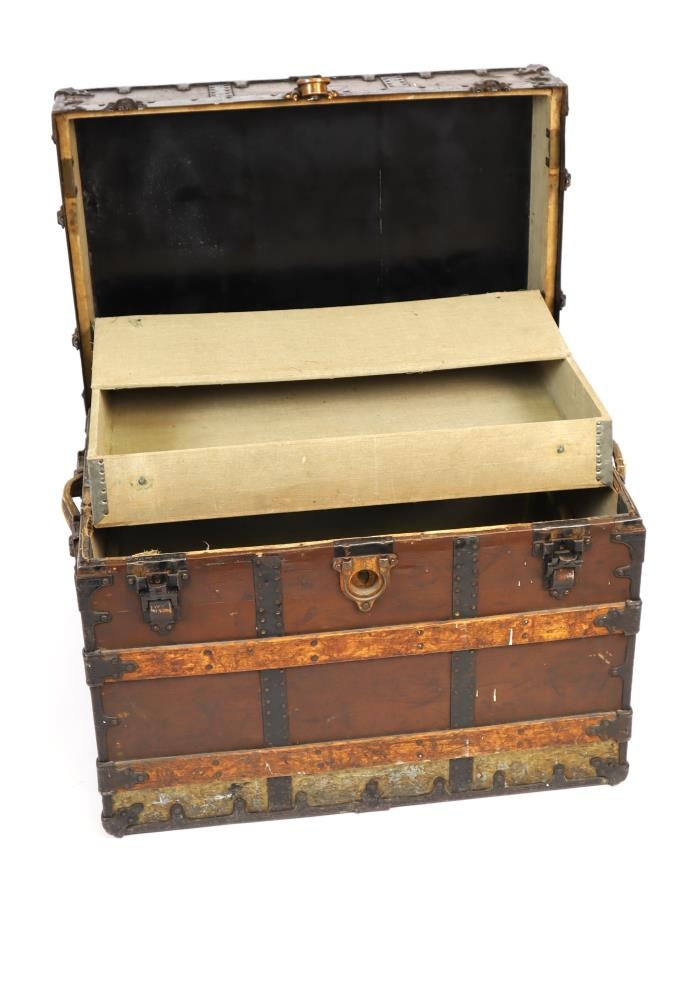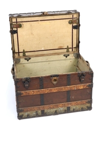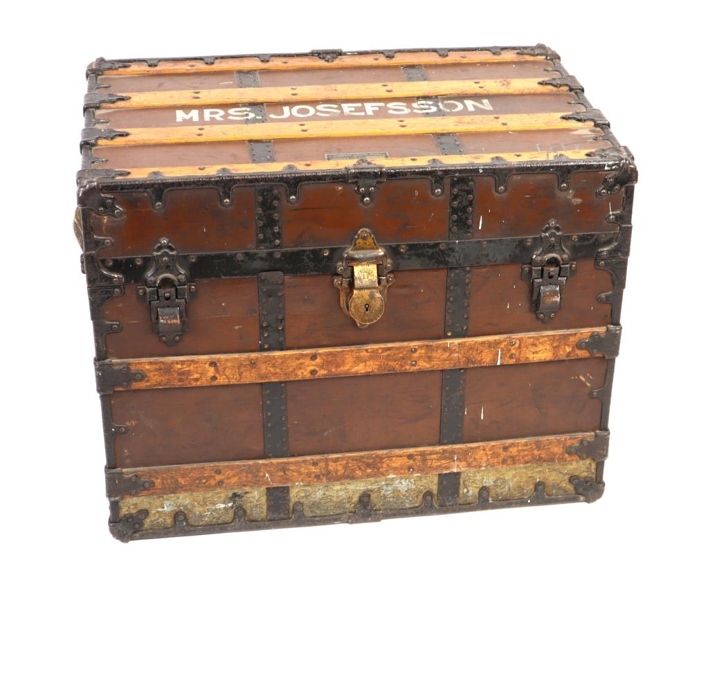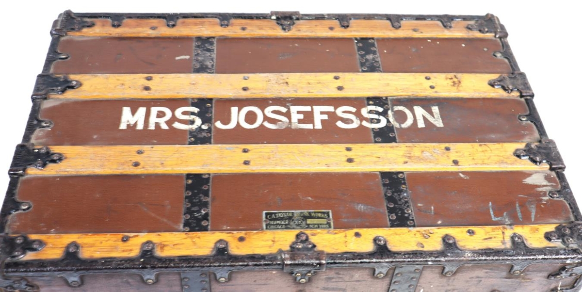 Mjög vandað koffort úr tré með styrkingum á köntum og hornum úr járni. Mikið skreyttur, þ.e. járnverk nokkuð flúrað. Hann er dökkbrúnn með ljósbrúnum trélistum en járnverkið er svartmálað. Ofan á loki er stenslað í hvítum lit, nafnið: "MRS.JOSEFSSON". Að innan er það hvítt, með sér hólfi í loki. Innan á loki er lítill miði með prentaðri áletrun: "Things are seldom what they seem; skim milk masquerades as cream.". Koffortið er merkt framleiðanda með litlu járnskilti sem á stendur m.a.: "C.A. TAYLOR TRUNK WORKS - NUMBER ______ CHICAGO NEW YORK".