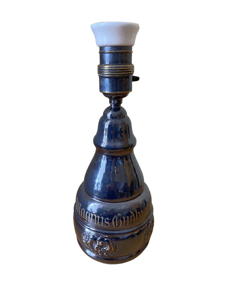 Borðlampi með innlagðri rafmagnstaug. Silfurplett, tveggja turna. Innan í ferhyrningi stendur: Áletrað: "Magnús Guðbjörnsson. Íslandsmeistari 1918." Hæð 29 sm. Áletrun: "Magnús Guðbjörnsson. Íslandsmeistari 1918."