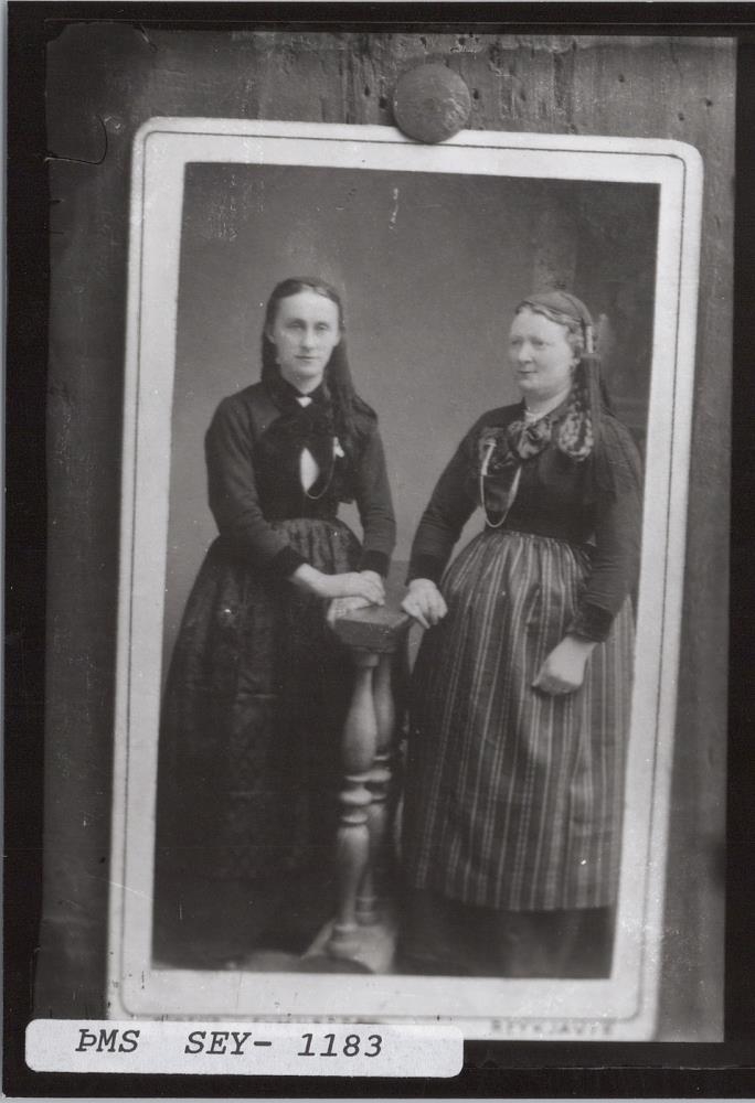 Eftirtaka. T.v. er Kristín Árnadóttir, maður hennar var Einar Markússon. T.h. er Ingunn Hansdóttir Hoffmann g. Bjarnason