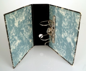 Bréfabindi, eða mappa, framleitt af Öskju hf. Bindið er 25 x 21 cm að stærð. Marmaramynstur skreytir bréfabindið að innan- og utanverðu. Ytri hliðar þess eru dökkgráar að lit en þær innri grábláar. Kjölurinn er svartur að lit og á hann er límdur miði með nokkrum línum, þekur hann nánast allan kjölinn. Efst og neðst á miðanum er merki framleiðandans, "ASKJA" í fölgrænum stöfum inni í svörtu A-i í þrívídd. Fölgrænar og svartar rendur eru fyrir aftan merkið, þvert yfir miðann. Fingurgat með málmhring er neðarlega á kili, ofan við neðra merkið. Inni í bréfabindinu er blaðabogi úr málmi með þvingu og spennu. "LEITZ" er greypt í bæði. Neðri brún bindisins er farin að slitna.