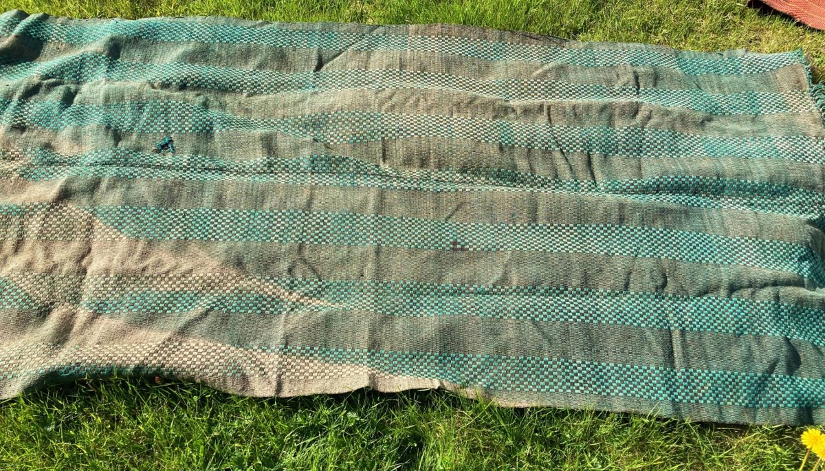 Salúnsofið dívanteppi með kögri, grænt og svart. Er slitið og upplitað. Var hirt af safnverði í braki gamla íbúðarhússins í Hemlu. Mun ofið af frú Ingibjörgu Magnúsdóttur í Hemlu um 1930.