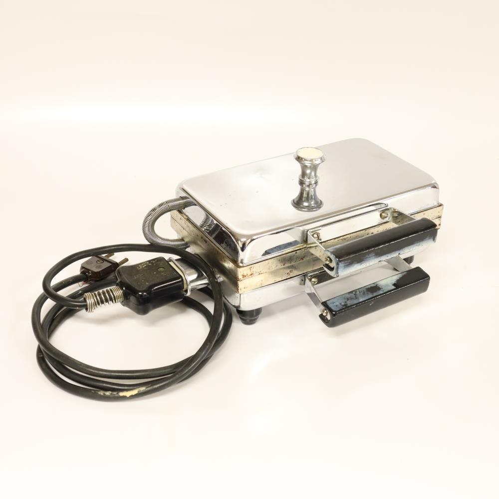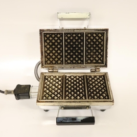 Vöfflujárn sem var til á heimili í Reykjavík fyrir seinni heimsstyrjöld. Gefandi: Ragnar Jónsson (1960), búsettur í Kópavogi. Notandi var föðuramma Ragnars, Ingunn Jónsdóttir Thorstensen (1894 - 1958).