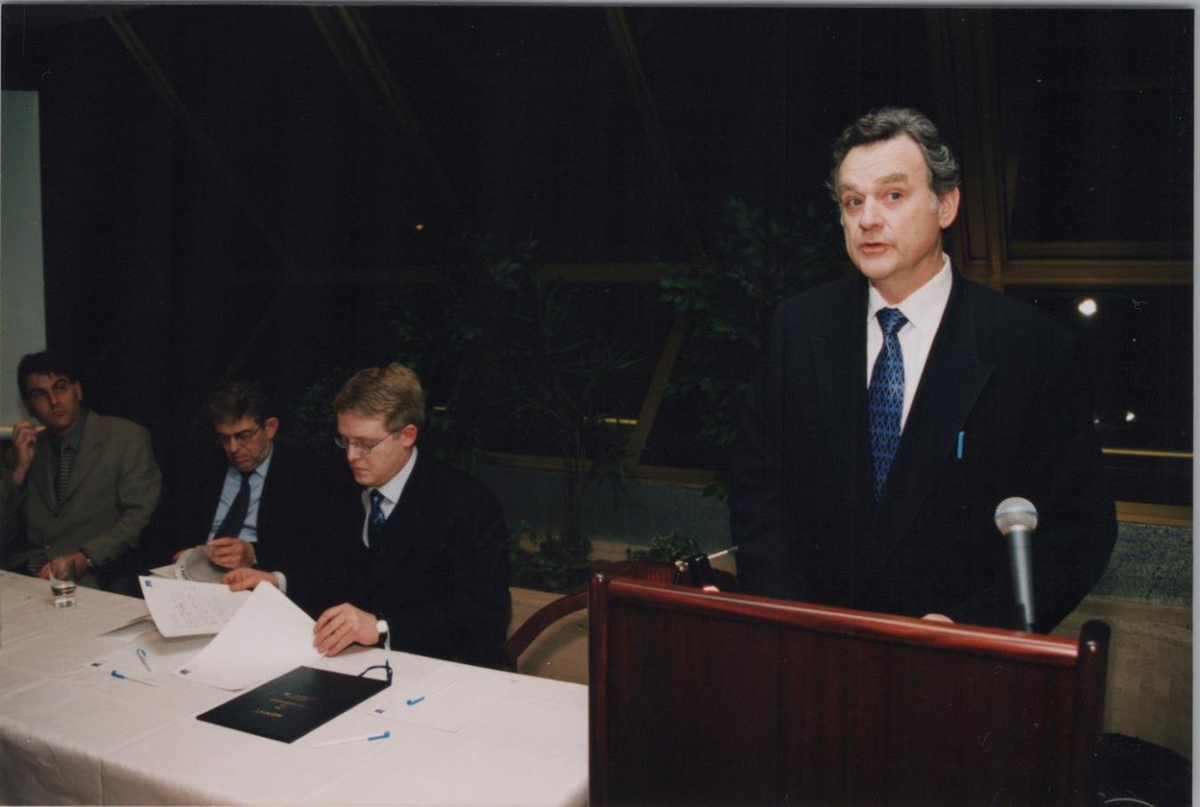 Ómerkt. Björn Bjarnason situr í miðið við borðið.
