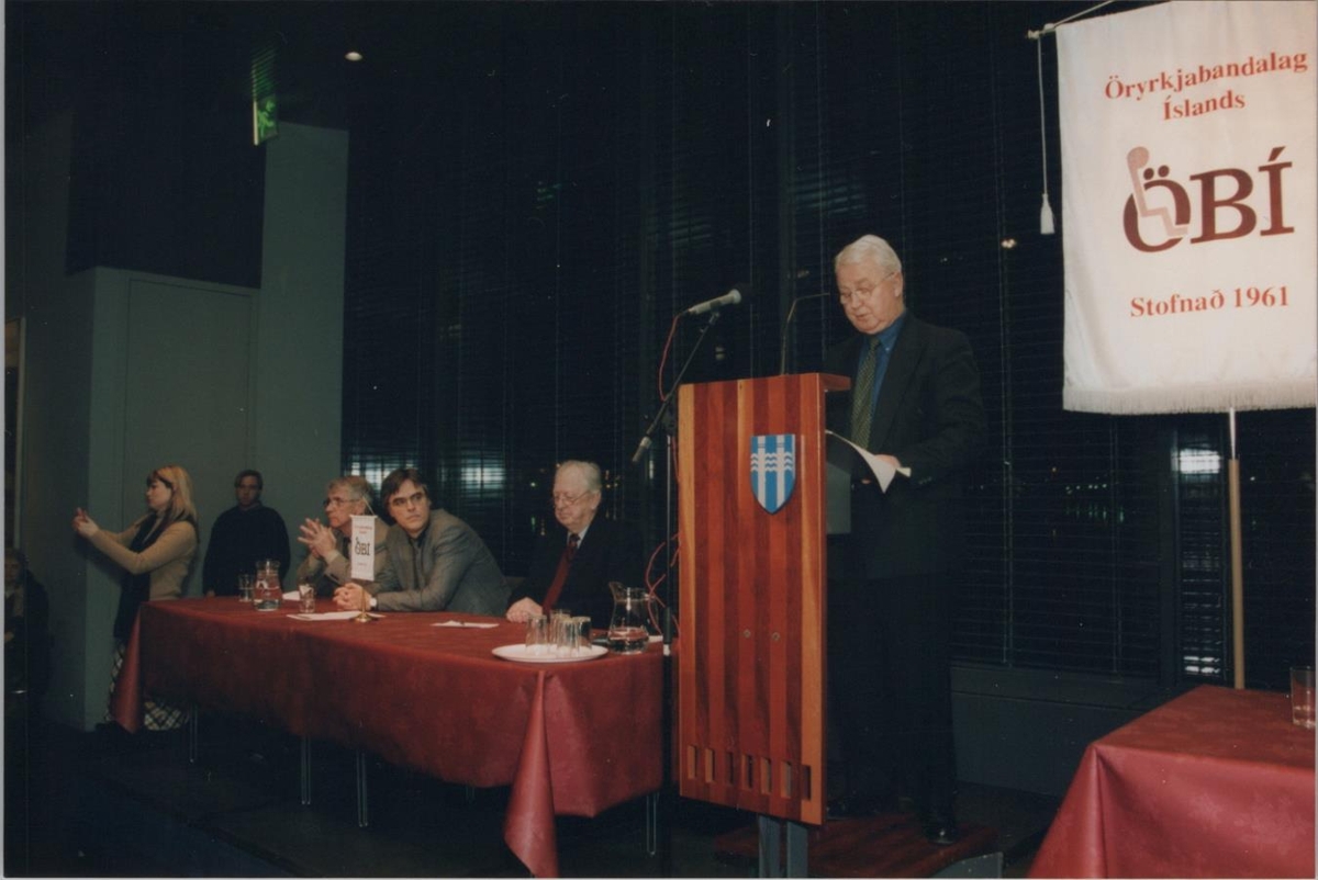 Fundur í Ráðhúsi Reykjavíkur vegna öryrkjamálsins þar sem m.a. fulltrúar launþegahreyfingarinnar tóku þátt, í kringum aldamótin 2000.