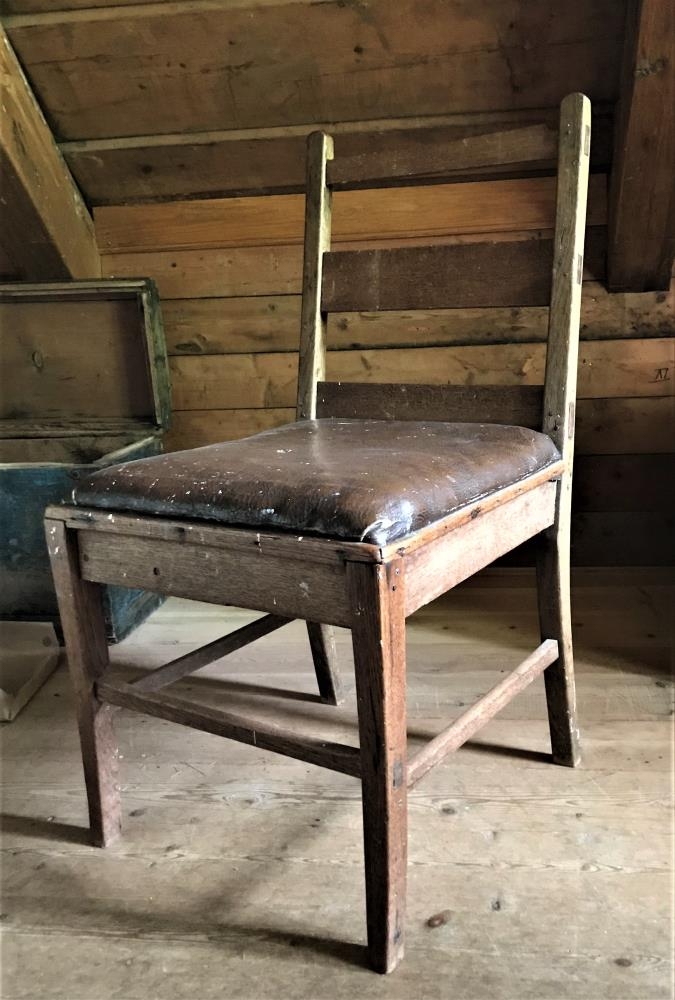 Stóll smíðaður af gefanda um 1930. Þetta er vanalegur stofustóll með baki og 3 rimum í baki. Smíðaefni eik og mahogny, fengið á rekafjöru. Gefið af Ólafi Jakobssyni frá Fagradal.