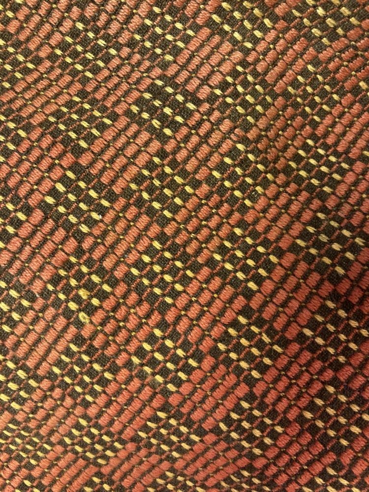 Salúnsofið teppi, litir hinir sömu og í S-2299 en öðruvísi skipað niður. Verk Margrétar Magnúsdóttur á Maríubakka um 1930. Stærð: 2,18 x 1,23 m. Talsvert slitið. Vandað verk. Gef. Margrét Kristófersdóttir á Maríubakka í Fljótshverfi