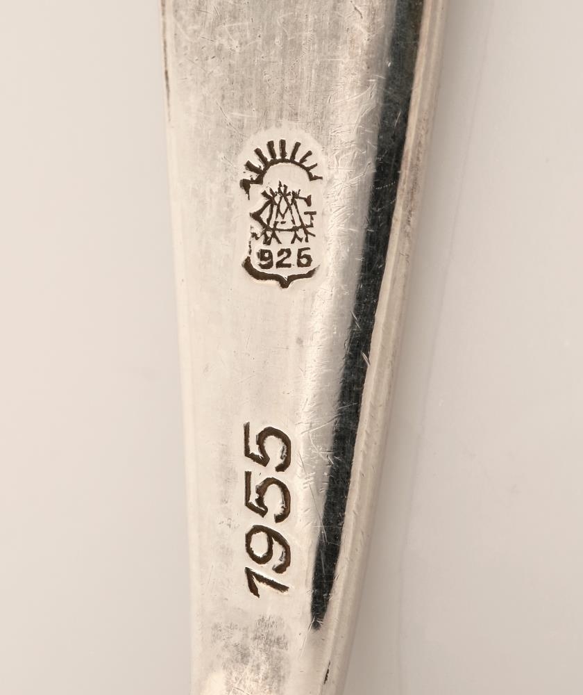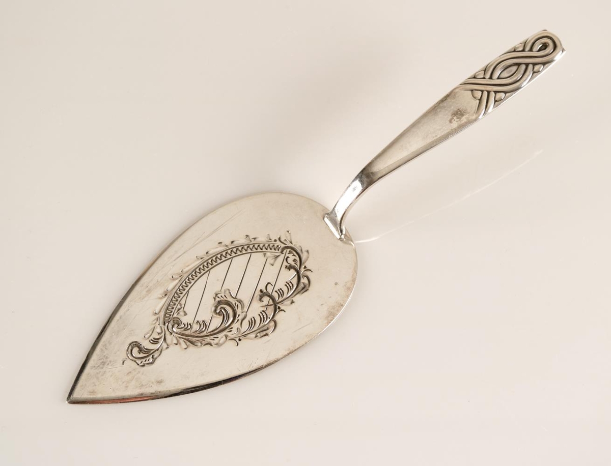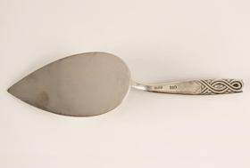 Snittuspaði úr silfri. Skreyti er á efri hluta skaftsins, á bæði fram- og bakhlið spaðans. Mynstrið á skaftinu kallast "Reykjavík", það táknar öndvegissúlurnar og sækir innblástur í fléttur víkingatímans. Guðlaugur A. Magnússon gullsmiður hannaði mynstrið og hófst framleiðsla á borðbúnaði með mynstrinu í Gull- og silfursmiðjunni Ernu á tímabilinu 1936-1946. Í framhlið blaðsins er bókstafurinn "G" greyptur með jurtaskreyti. Nokkrar línur eru greyptar á ská inni í bókstafnum. Stimpill er á bakhlið skaftsins; stafirnir GAM undir rísandi sól, fyrir neðan stendur 925. Skeiðarnar eru því úr 92,5% sterling silfri. Neðan við smiðsstimpilinn er ártalið "1955" greypt. Blaðið er flatt og dropalaga, skaftið bogadregið þar sem það mætir blaðinu. Snittuspaðinn er vel með farinn en rispur eru í blaðinu sem gefa til kynna notkun hans. Spaðinn er 16 cm að lengd, mesta breidd blaðsins er 4,8 cm.
