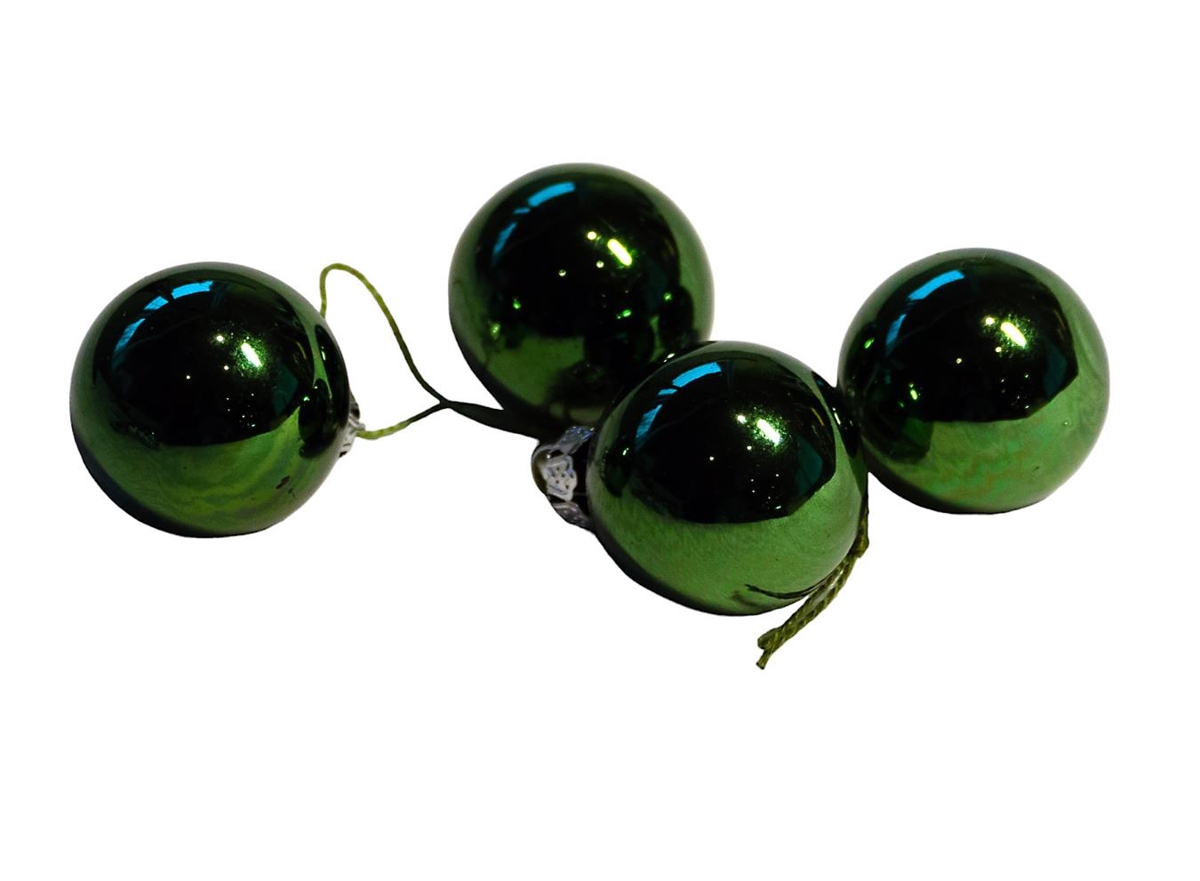 Kassi með tveimur jólatréstoppum, átta grænum jólakúlum, jólafugl og jólaálfur