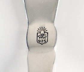 GAM er stimpill Guðlaugs A. Magnússonar (f. 1902, d. 1952) gullsmiðs. Stimpillinn var tekinn í notkun árið 1946. Ferilinn hóf Guðlaugur 1924 þegar hann setti á stofn verkstæði á Ísafirði. Árið 1927 fluttist hann til Reykjavíkur og opnaði verslun sína þar. Var stimpill hans fyst um sinn upphafsstafirnir GAM auk hreinleikastimpilsins. Á árunum 1950-1962 voru allir munir frá Guðlaugi stimplaðir með ártalsstimpli, en þar sem ekkert ártal er á smjörhnífnum hlýtur hann að hafa verið framleiddur eftir 1962. Á verkstæðinu smíðaði Guðlaugur t.a.m. ýmsan borðbúnað, stærri silfurmuni og kirkjusilfur. Fyrst um sinn voru allir munir handgerðir frá grunni en upp úr 1936 hófst framleiðsla á borðbúnaði úr silfri með auknum vélakosti. Árið 1947 var framleiðsluþátturinn gerður að hlutafélagi undir nafninu Erna, en verslunin starfaði áfram undir hans nafni. Verkefni smiðjunnar Ernu var að smíða vörur fyrir verslun Guðlaugs. Í seinni tíð hefur Erna einnig sinnt sölu á borðbúnaði. Fyrirtækin tvö voru um tíma meðal öflugustu fyrirtækja í Reykjavík og náði smíði silfurmuna mest 2 tonnum árlega. Eftir lát Guðlaugs tóku afkomendur hans við keflinu. Bæði fyrirtækin hafa haldist í fjölskyldunni, en afkomendur Guðlaugs starfa í dag bæði hjá skartgripaverslun Guðlaugs A. Magnússonar og hjá gull- og silfursmiðjunni Ernu.