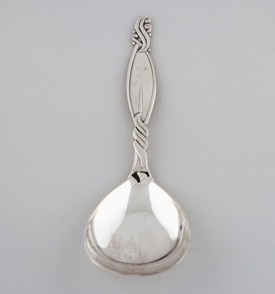 Ávaxtaskeið úr silfri. Jurtaskreyti er við báða enda skaftsins. Mynstrið kallast Vor og sækir innblástur í vorblóm. Bárður Jóhannesson (f. 1926, d. 1996) gullsmiður hannaði mynstrið og hófst framleiðsla á borðbúnaði með mynstrinu í Gull- og silfursmiðjunni Ernu árið 1954. Stimpill er á bakhlið skaftsins; stafirnir GAM undir rísandi sól, fyrir neðan stendur 925. Skeiðarnar eru því úr 92,5% sterling silfri. Skeiðin er 19,7 cm að lengd, mesta breidd hennar er 6 cm.