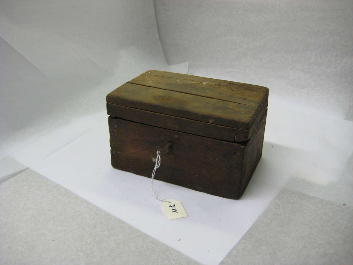 læsingu og lykli. Sennilega verið notaður til að geyma í honum skrúfnagla