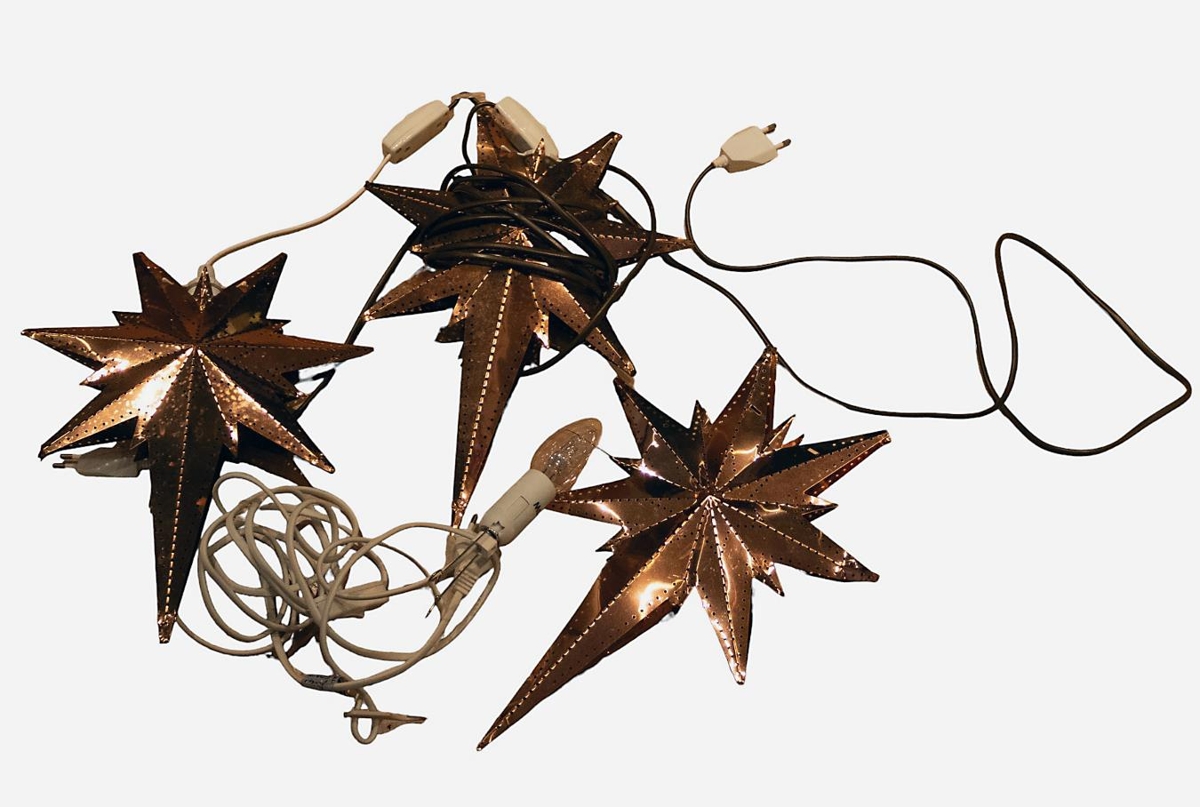 Þrjú stk. af koparlituðum jólastjörnum með ljósaperum