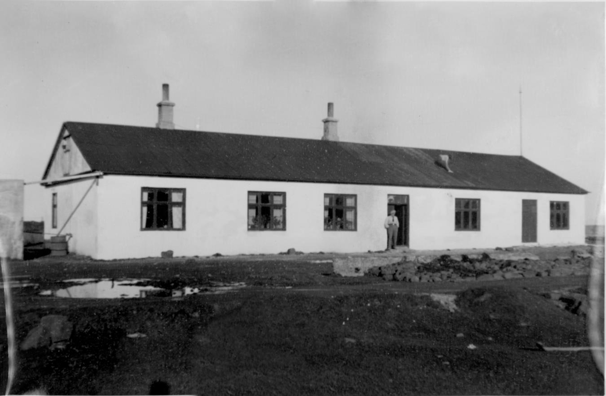Myndin er af íbúðarhúsinu Gerðum í Garði, heimili hjónanna Guðmundar Þórðarsonar (1872 – 1938) og Ingibjargar Jónsdóttur (1883 – 1956). Í gættinni stendur Jón sonur þeirra hjóna og Guðrún dóttir þeirra er uppi á þakinu. Þar sem íbúðarhúsið stóð áður, reis síðar Hraðfrystihús Gerðabátanna sem var í eigu barna Guðmundar og Ingibjargar.