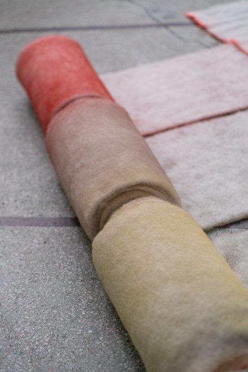 Verkið „Hvíla” er gólfverk. Efniviðurinn er Lopi loft sem er þæfð íslensk ull 80%, íblönduð 20% akrýl. Verkið er málað með akrýl spreymálningu: