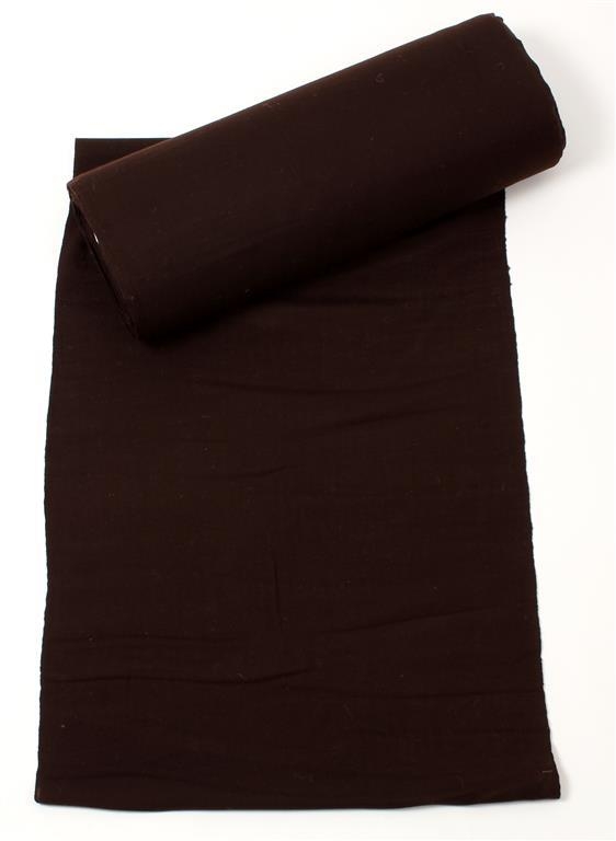 Strangi af brúnu ullarefni. Fremur fíngerð einskefta. Frá Vefnaðarstofu Karólínu Guðmundsdóttur.