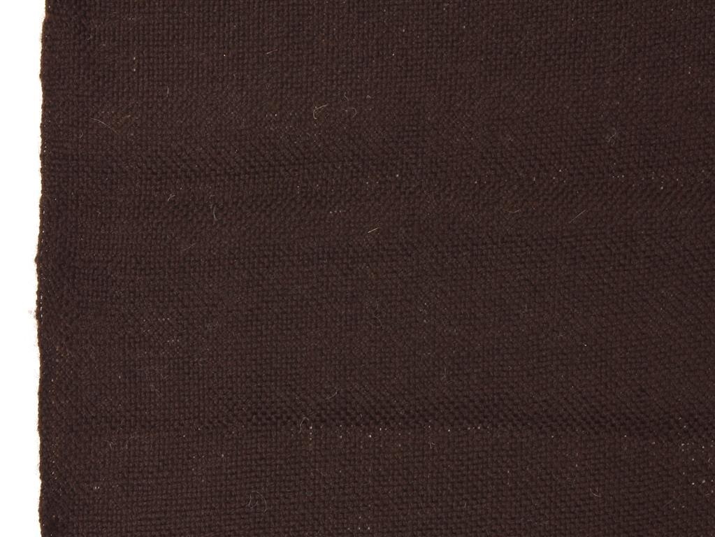 Strangi af brúnu ullarefni. Fremur fíngerð einskefta. Frá Vefnaðarstofu Karólínu Guðmundsdóttur.