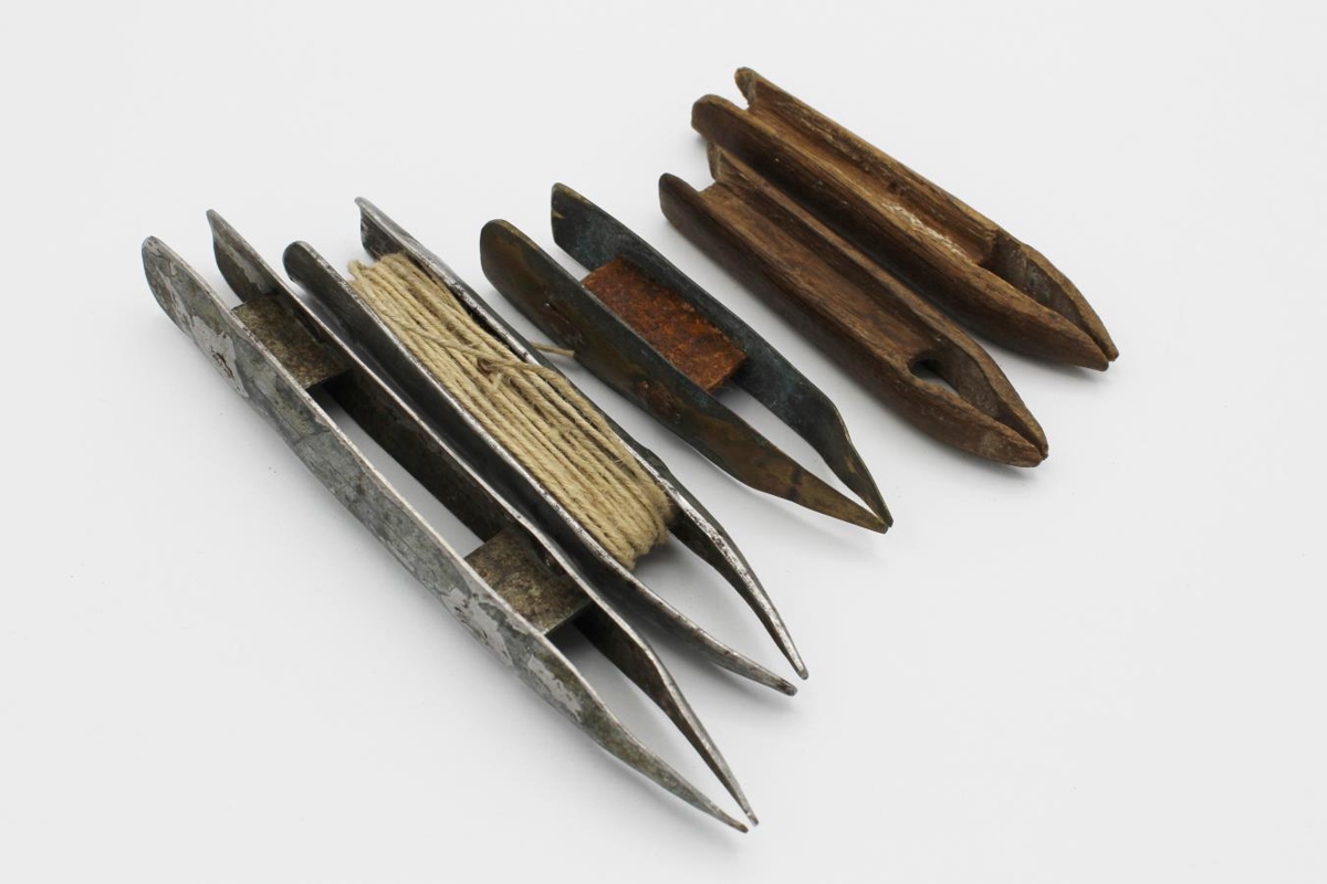 Netanálar 5 stykki. 14,0 sm úr járni, 11,5 sm úr járni, 8,5 sm úr kopar, 9,0 sm og 8,3 sm úr tré. 3464 A: Segulnaglar úr kopar 4 stykki (Sigurnaglar?). Þessar nálar voru smíðaðar og notaðar af Sigurði Hannessyni í Hólum á Stokkseyri við gerð silunganeta, sennilega 1940-1950.