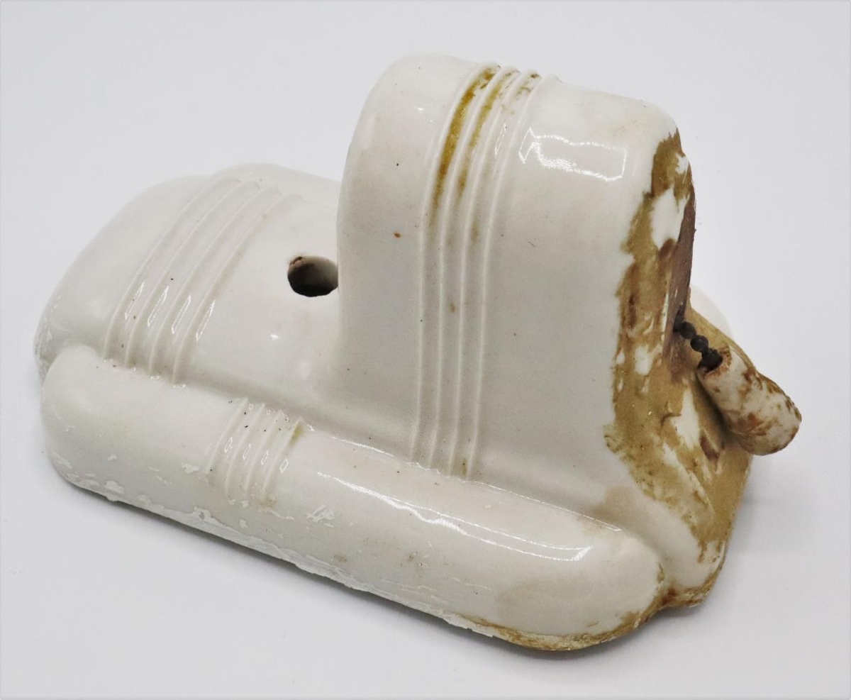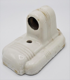 Veggljós án kúpuls. Rofi fyrir ljósið er keðja sem kemur niður af perustæðinu sem er hvítemalerað postulín.