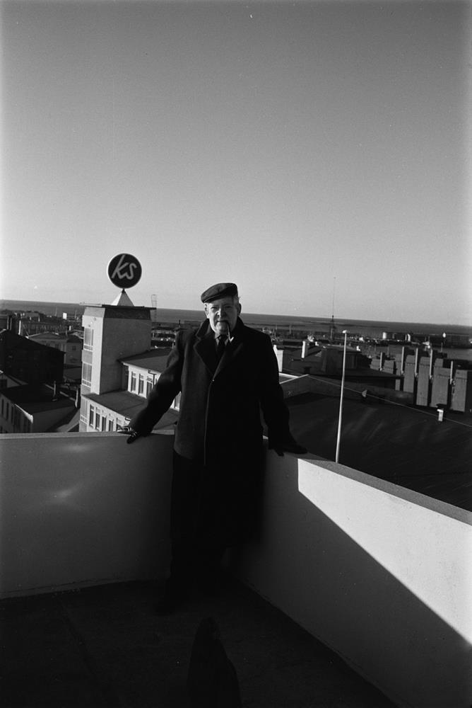 Myndirnar eru teknar á þaksvölum húss við Laugaveg, Sverrir með pípu.