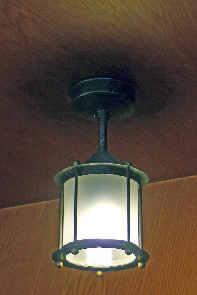 Ljósið smíðaði Sveinn faðir Auðar. Það er svart með sandblásnum hringlaga glerkúpul.