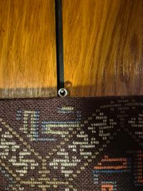 Veggteppið bak við flygilinn í stofunni er saumað af móður Auðar, Halldóru Jónsdóttur. Hún vann um tíma hjá Þjóðminjasafni Íslands og þekkti safnið vel. Hún teiknaði munstrið upp af safngripum þar, t.d. af reflum og veggteppum. Á reflunum eru yfirleitt útsaumaðar myndir hver með sinni mynd sem vísar í sögu líklega ávallt úr biblíunni. Gera má ráð fyrir að þessar fjórar myndir séu þannig fengnar en ekki hefur fundist ein fyrirmynd í Þjóðminjasafninu, með rannsóknum er líklega hægt að finna fyrirmyndina eða fyrirmyndirnar. Á Skógarsafni má sjá veggteppi (safnnúmer A. R-7011) sem svipar mjög til þessa teppis, þar eru myndirnar einmitt í lóðréttri röð eins og Auði minnti að mamma hennar hafi notað. Það teppi saumaði Steinunn Guðríður Hermannsdóttir (Gógó), f. 24.09.1921. Hún bjó í Reykjavík og notaði eimitt fyrirmynd frá Þjóðminjasafninu