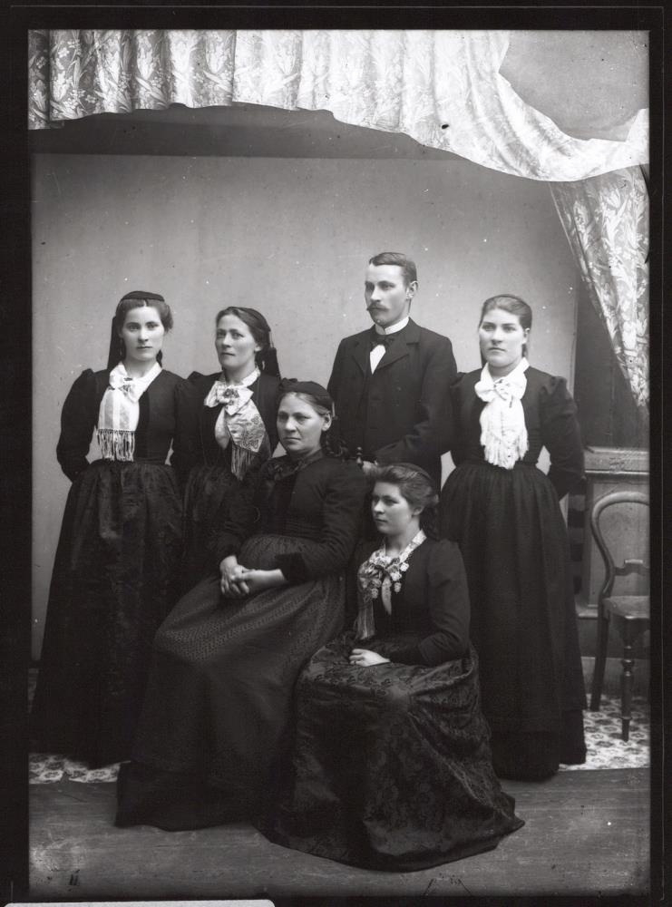 Þekkt á myndinni eru: Helga Stefánsdóttir húsfreyja í Reykjavík, maður hennar var Magnús Brynjólfsson frá Engey. Helga stendur lengst til vinstri. Standandi lengst til hægri er Lára Stefánsdóttir á Ögri, maður hennar var Hjörtur Sæmundsson.