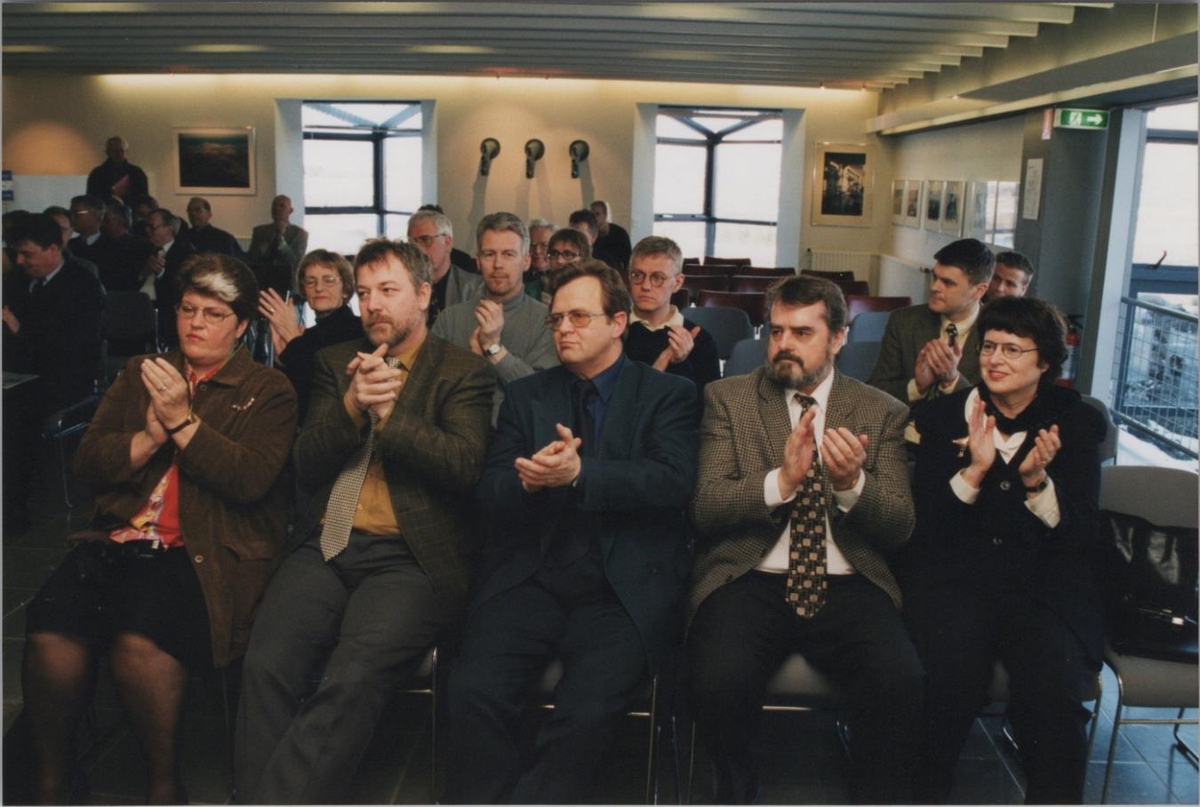Fyrstu jarðlagnatæknar útskrifast í Stöðvarhúsi Gvendarbrunna. Björn Grétar Sveinsson form VMSÍ. Ingibjörg Sólrún Gíslad, borgarstjóri og fl.. 13.3 1999.