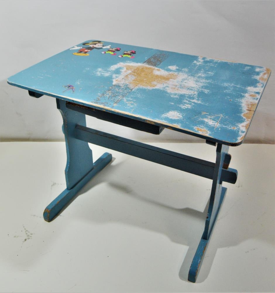 Barnaborð. Borðið ásamt stól, 2005-26-1, fékk gefandi í jólagjöf árið 1947 frá föður sínum. Upphaflega voru húsgögnin lökkuð, viðarlituð en seinna voru þau máluð.