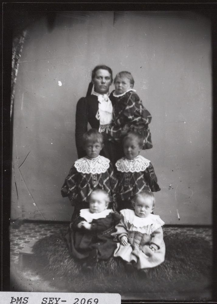 Sigrún Gestsdóttir húsfreyja í Reykjavík ásamt fimm börnum sínum. Maður hennar var Stefán Eiríksson myndskeri.