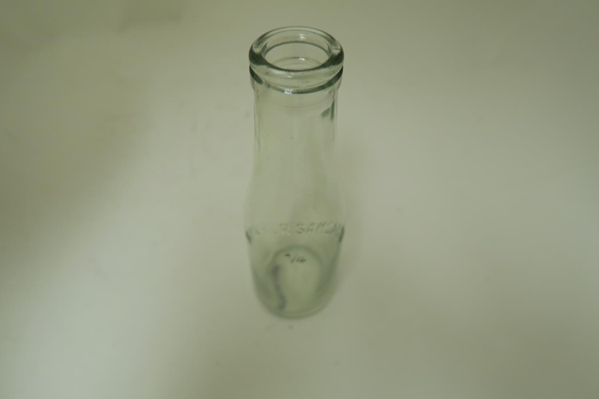 Mjólkurflaska úr glæru gleri.