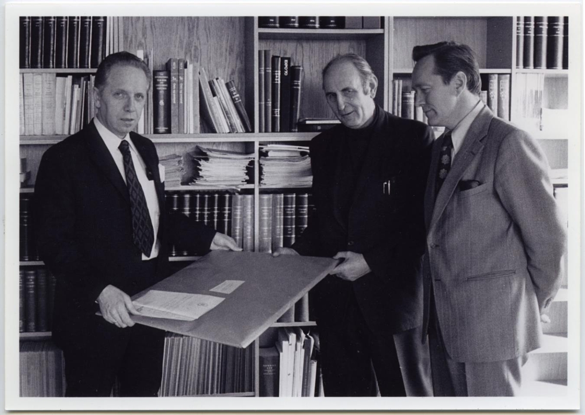 Þórður Einarsson, Steindór Steindórsson og Örlygur Hálfdánarson þegar litmyndapakkinn barst til ráðuneytisins.