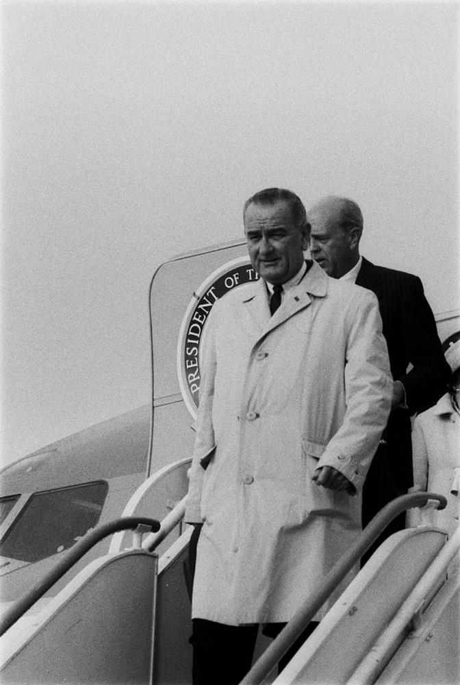 Lyndon B. Johnson varaforseti Bandaríkjanna á Bessastöðum með konu sinni Lady Bird Johnson og uppkominni dóttir. Flugvélin lenti á Keflavíkurflugvelli þar sem varaforsetinn heilsaði upp á mannfjölda og fór síðan þaðan með þyrlu til Bessastaða og hitti forsetahjónin, Ásgeir Ásgeirsson og Dóru Þórhallsdóttir.