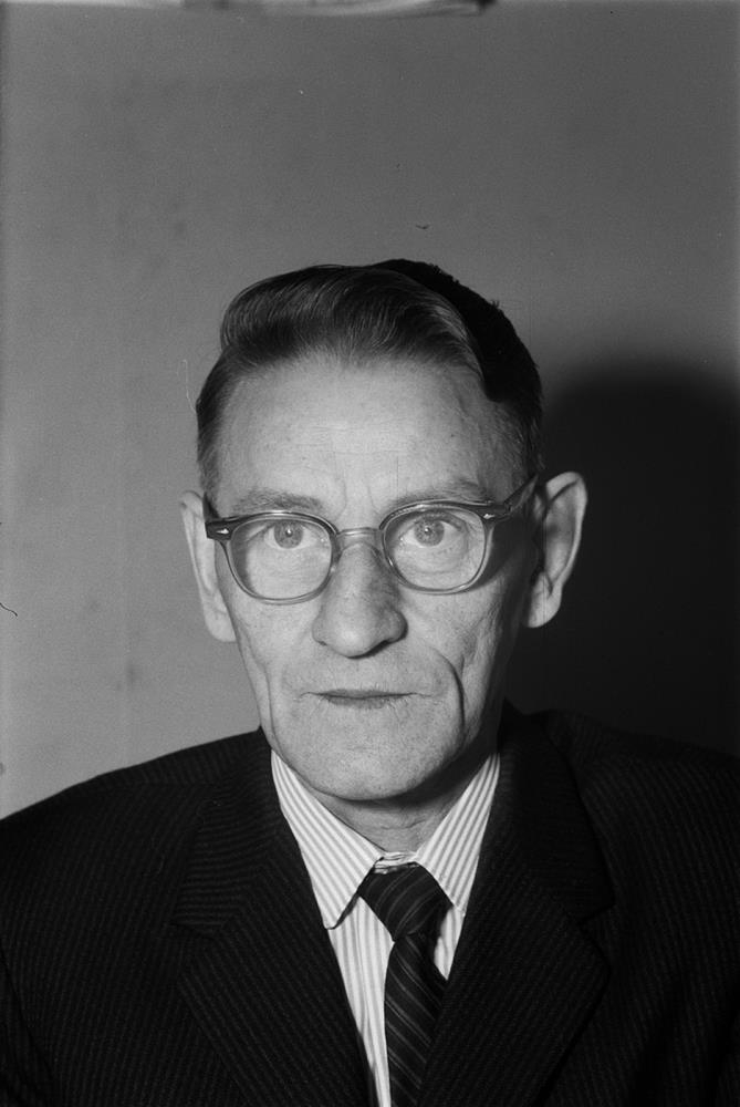 Prúðbúinn karlmaður með gleraugu, situr fyrir á mynd. Þorvaldur Jóhannesson hét auglýsingastjóri Þjóðviljans á 7. áratug 20. aldar.