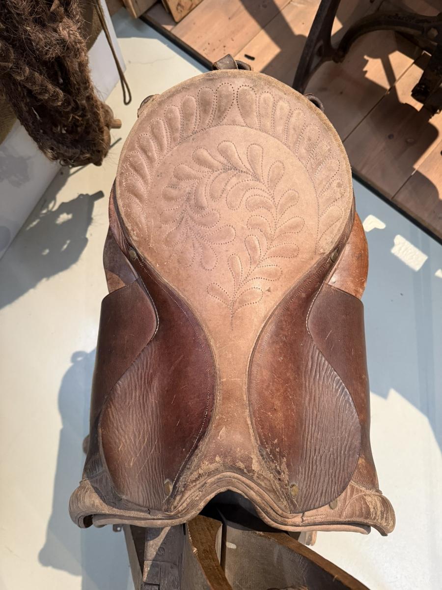 Fermingarhnakkur gefanda, Guðmundar Óla Sigurgeirssonar kennara á Kirkjubæjarklaustri. Guðmundur er frá Eyrtra-Fróðholti á Rangárvöllum f. 1949. Hnakkurinn var fermingargjöf foreldra hans 1963, smíðaður af Markúsi Jónssyni í Borgareyrum u. Eyjafjöllum. Hann er klæddur með brúnu leðri. Setan með saumaðri jurtaskreytingu. Engin ístöð. Er nú við verkstæði Markúsar í Samgöngusafni.