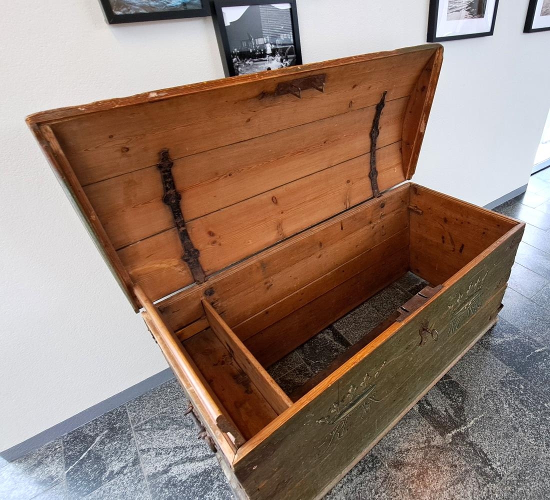 Kista sem var í eigu Aðalbjargar Jónsdóttur húsfreyju á Mýri frá því um 1903-1940, síðan Kristjönu Jónsdóttur dóttur hennar. Samkvæmt uppskriftum á dánarbúum Mýrarbænda (forfeðrum Aðalbjargar) og þar er ekki þessarar kistu neins staðar getið. Þar af leiðandi telur gefandinn Jón Erlendsson (sonur Kristjönu Helgu) að hún gæti hafa komið í Mýri með Kristjönu Helgu Jónsdóttur (1858-1900), móður Aðalbjargar, þegar hún giftist í Mýri, en hún var frá Leifsstöðum í Öngulstaðahreppi og kistan þá sennilega eyfirsk að uppruna, merkingarnar, ef ekki danskar, þá í dönskum stíl. Málað á framhlið kistunnar er ártalið 1797. Kistan er ófúin en eina fjöl vantar í botn hennar. Lykill fylgir.