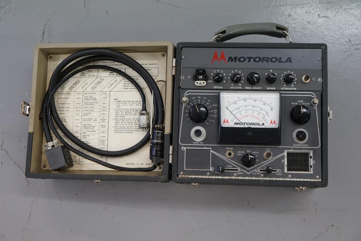 Motorola portable Test set TU 546, lampamælir í tösku til að ferðast með. Var notað þegar þurfti að fara í viðgerðarferðir. Hér áður fyrr var algengt að lampar entust misvel og var því gott að geta mælt gæðin sem flýtti fyrir bilanagreiningu.