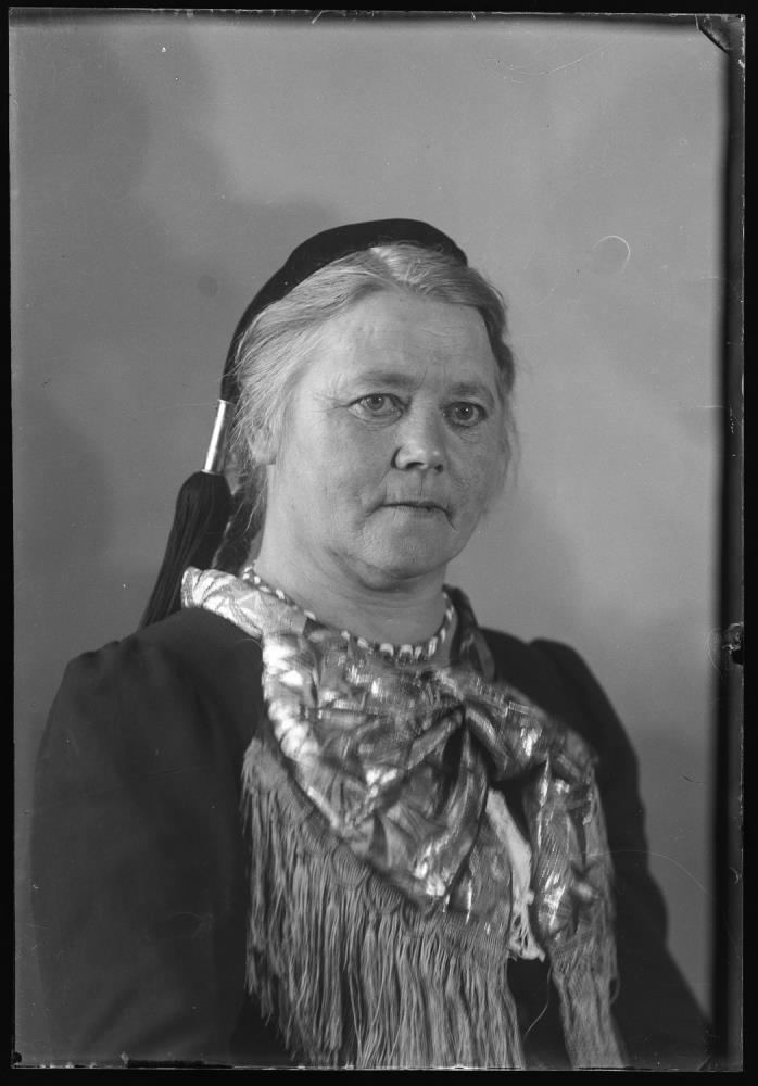 Kona í peysufötum.
