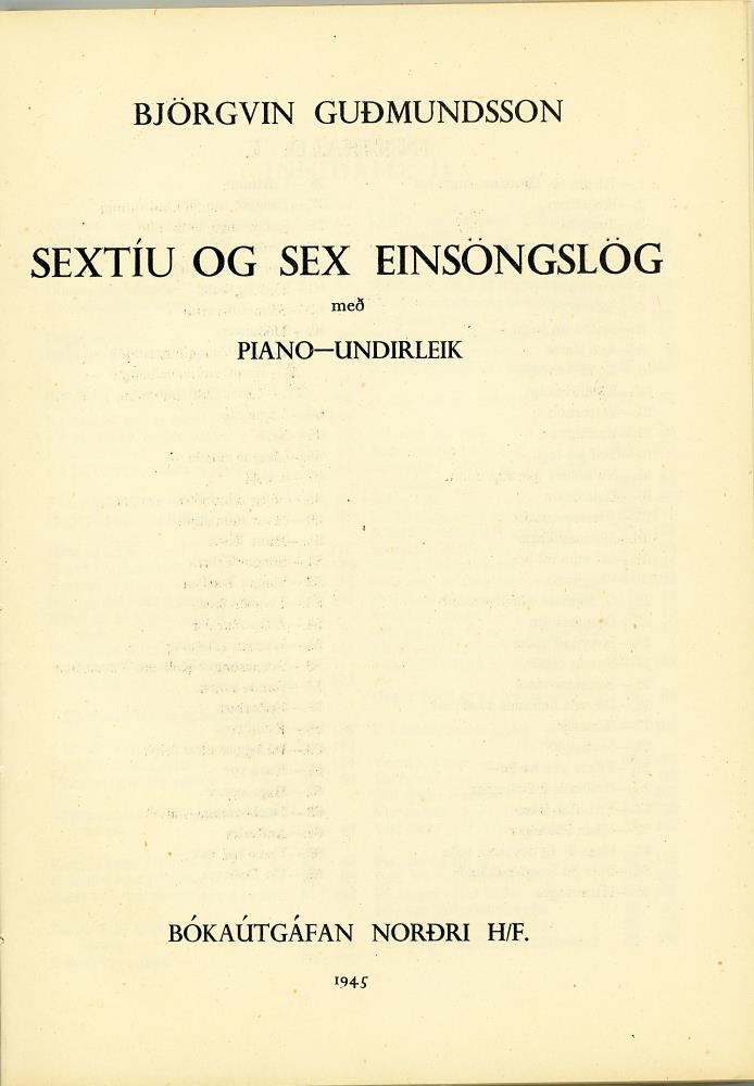 Sextíu og sex einsöngslög : með píanó-undirleik / Björgvin Guðmundsson. 1945. - [6], 177 bls. : nótur