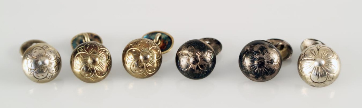 Fjögurra og fimm blaða blóm mun hafa verið algengt skreyti á hnöppum, sjá t.a.m. Þjms. 766, 776, 1890, 2642, 3017, 3373, 3377, 3378, 3379, 3380, 3848, 5295 og 2008-5-258. Á Þjóðminjasafninu eru varðveittir peysuhnappar (Þjms. 2012-11) af sömu gerð og ermahnapparnir, þeir hafa jafnframt smiðsstimpla Erlends og Magnúsar.