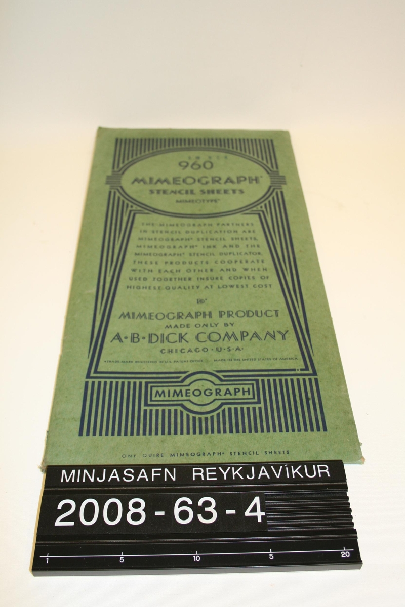 Stensilblöð, ónotuð í upprunalegum umbúðum. 960 MIMEOGRAPH STENCIL SHEETS MIMEOTYPE....USA.
