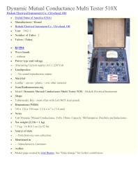 Á þessum tíma var eingöngu fluttir inn íhlutir frá Bandaríkjunum, þar á meðal radiolampar því ekkert efni fékkst frá Evrópu vegna stríðsins. Þessi mælir er fyrir ameríska lampa. Mælirinn kom úr safni mælitækja sem geymd voru í húsi Langbylgjustöðvarinnar á Rjúpnahæð. Notaður af Starfsmenn Viðtækjasmiðju Ríkisútvarpsins frá 1942 til 1949.