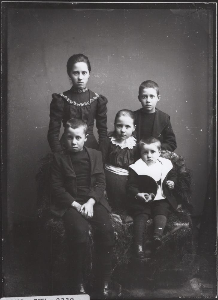 Stelpurnar eru f.v. Hansína Gunnarsdóttir og Abelína Gunnarsdóttir. Eldri strákarnir eru Friðrik Gunnarsson og Hjalti Gunnarsson, óvíst hvor þeirra er hvar. Yngsti strákurinn er Jóhannes Tryggvi Gunnarsson sem síðar varð biskup kaþólska safnaðarins í Reykjavík.