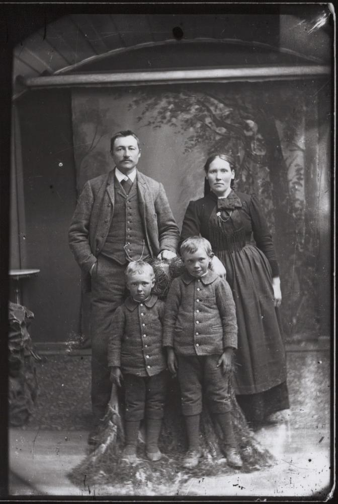 Hjónin Jóhanna Sveinbjarnardóttir og Markús Þorsteinsson, söðlasmiður og veggfóðrari í Reykjavík. Með tvo syni sína, f.v. Ágúst Markússon og Karl Magnússon.